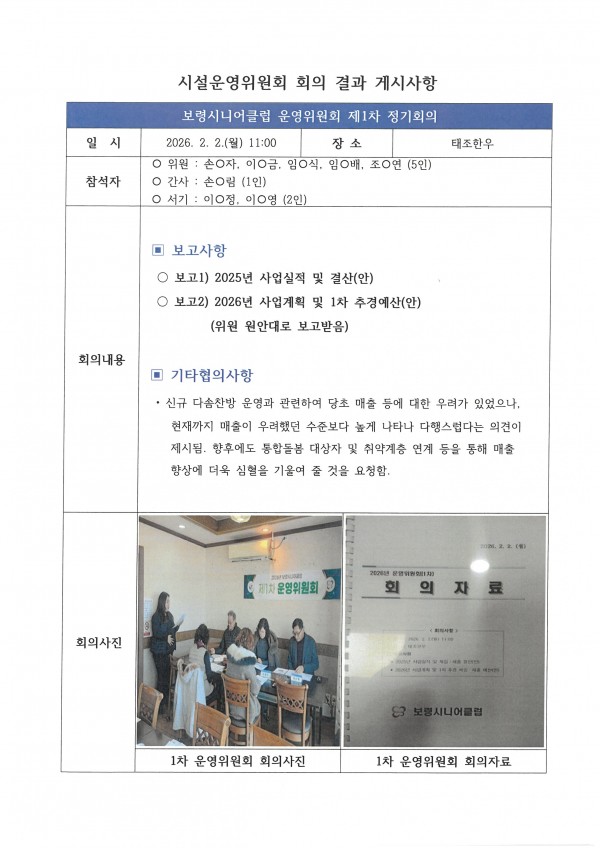 1차 운영위원회 회의 결과 알림