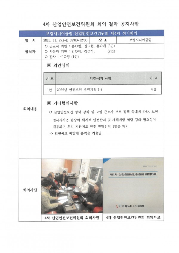 2025년 4차 산업안전보건위원회 회의 결과를 알립니다.